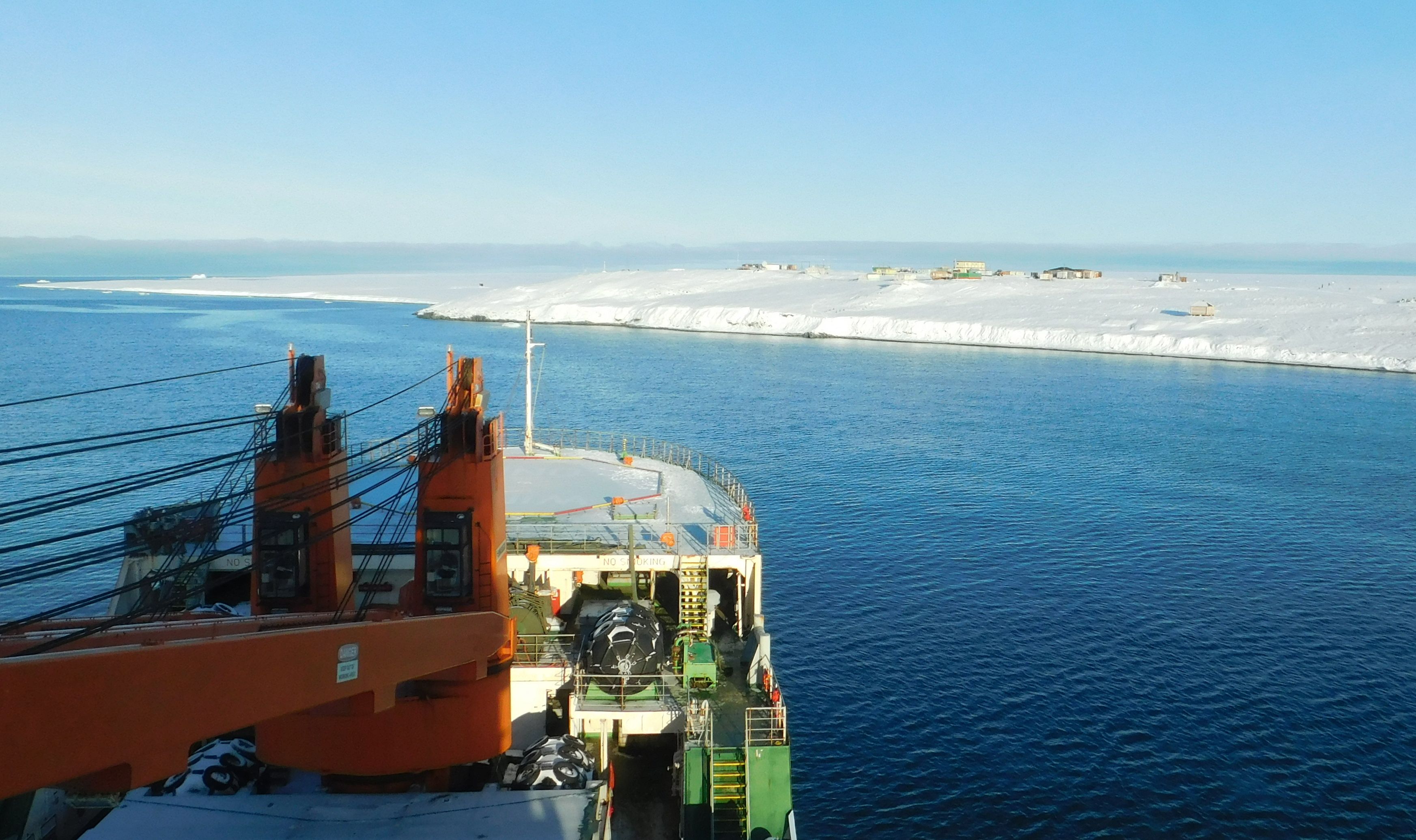 Die Versorgungsgüter für die Station Cape Baranov werden ausgeladen